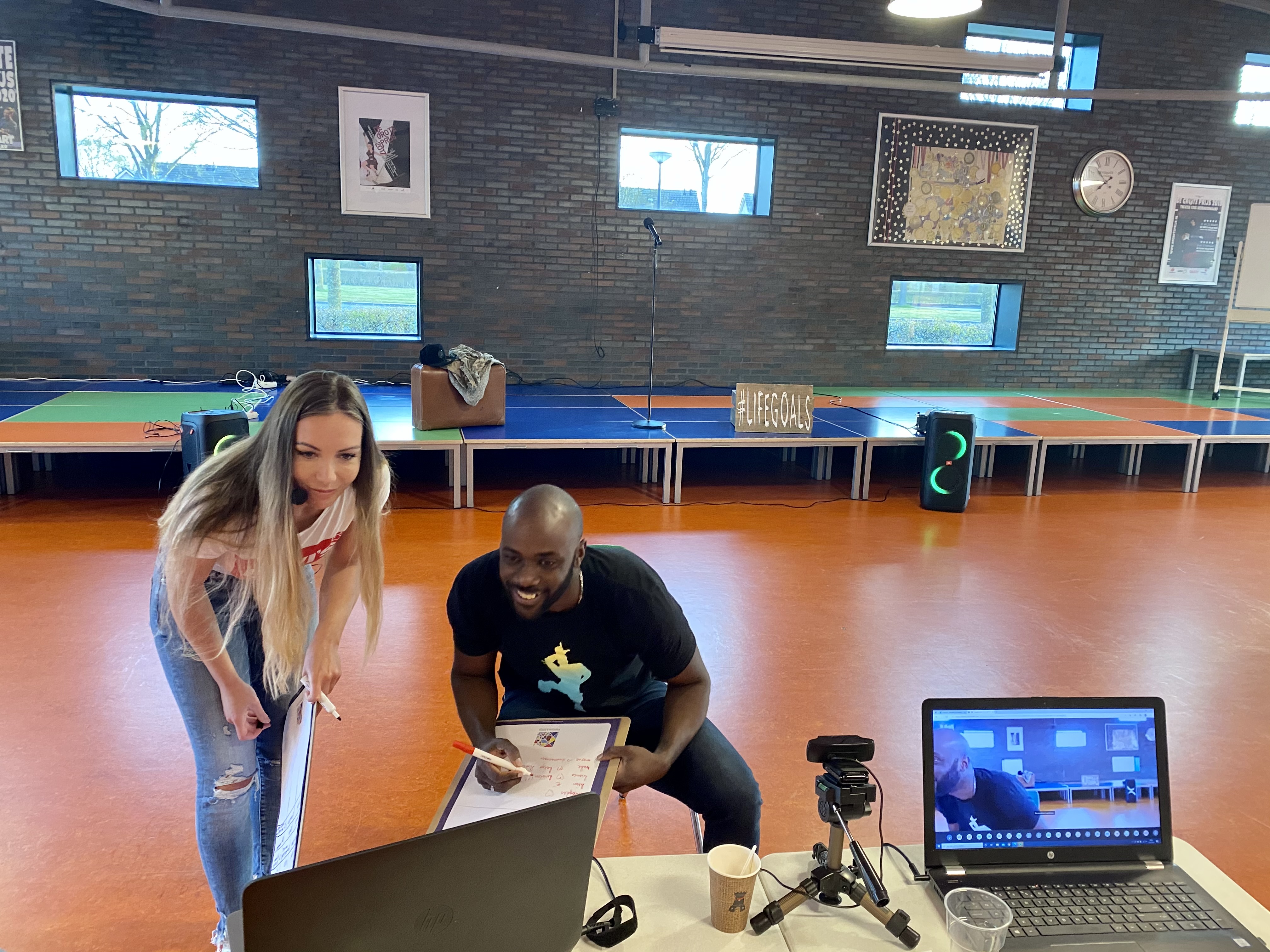 Wij nemen alle benodigdheden voor de voorstelling mee (incl. techniek). Het enige wat we nodig hebben is een plek om te spelen zoals een aula, kantine, gymzaal of groot lokaal. Hier graag voor elke ouder een zitplek klaarzetten.